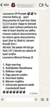 ਧਮਕੀ ਵਿੱਚ ‘ਲਾਰੈਂਸ ਆਫ਼ ਪੰਜਾਬ’ ਡਾਕੂਮੈਂਟਰੀ ਨੂੰ ਜਾਰੀ ਕਰਨ ਦੀ ਗੱਲ ਕਹਿੰਦੇ ਹੋਏ ਵਿਰੋਧ ਕਰਨ ਵਾਲਿਆਂ ਨੂੰ ਨਿਸ਼ਾਨਾ ਬਣਾਉਣ ਦੀ ਚੇਤਾਵਨੀ ਦਿੱਤੀ ਗਈ ਹੈ। ਇਸ ਵਿੱਚ ਕੁਝ ਹੋਰ ਨਾਮ ਵੀ ਸ਼ਾਮਲ ਦੱਸੇ ਜਾ ਰਹੇ ਹਨ, ਜਿਨ੍ਹਾਂ ਵਿੱਚ Bikram Singh Majithia ਅਤੇ ਐਡਵੋਕੇਟ ਜਨਰਲ ਮਨਿੰਦਰਜੀਤ ਸਿੰਘ ਬੇਦੀ ਦਾ ਨਾਮ ਵੀ ਲਿਆ ਗਿਆ ਹੈ।